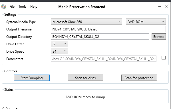 The MPF frontend detected a DVD Video disc (Indiana Jones in the Kingdom of the Crystal Skull, Disc 2 / Special Features) with an Xbox executable and folder as an Xbox 360 disc.