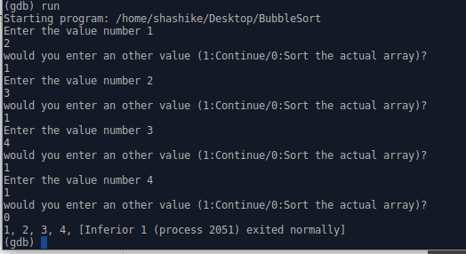 would you enter an other value (1:Continue/0:Sort the actual array)?