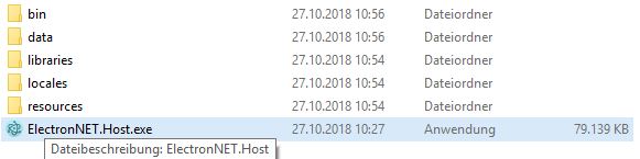 Ich habe jetzt versucht mir einen Überlick zu verschaffen, wie man das handhaben kann. Wenn ich es richtig sehe nutzt die Electron.NET CLI ja nur einen Befehl der mittels der JavaScript implementierten Electron Version dann letzlich compiliert wird. Falls ich es falsch verstanden habe, dann würde ich euch bitten mich da klarzustellen. Das würde dann ja heißen, das man selbst am Original Electron hand anlegen müsste um dieses feature so zu erhalten. Gibt es denn die Möglichkeit dies auch per CommandLine zu bestimmen, dann wäre die Implementierung für diese Idee sehr einfach.