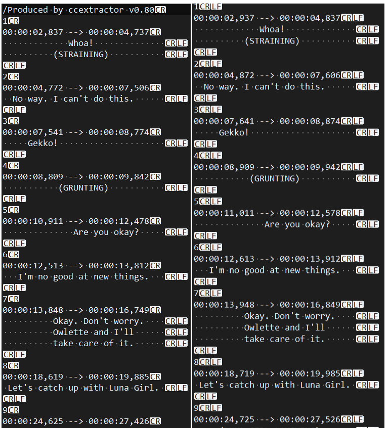This issue was fixed with pr #783. The image on the right is produced by ccextractor built from the latest commit while the image on the left is produced from ccextractor v0.80