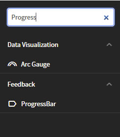 Menu after entering "Progress" in the Find component... control: