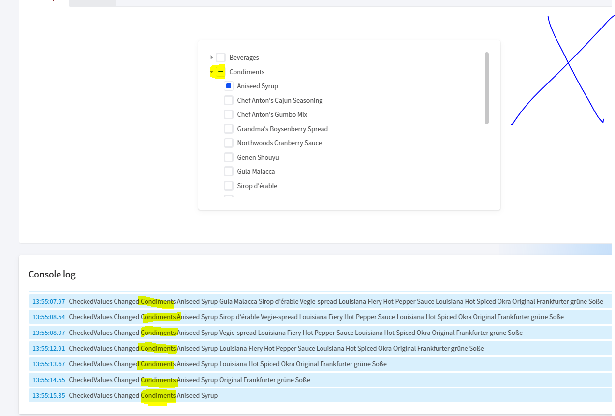 Lastly, in the last 2 screenshots, Condiments and Aniseed Syrup are both CheckValues, even though Condiment isn't actually checked.