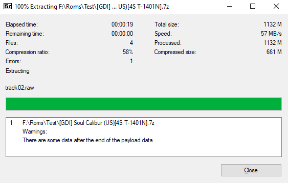 It seems to happen specifically with archives with data after end of payload: