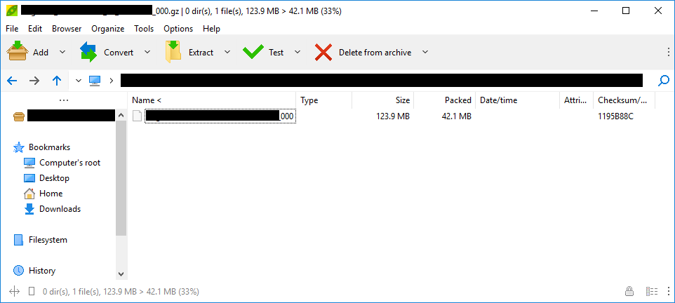 choco install -y gziprefreshenvto add gzip command path to$env:PATHgzip --list "\\fileshare\path\to\file.gz"In reading online, the 4th bit of the 4th byte determines if the original filename is kept. When it is not present, the "correct" behavior used by various tools is to use the gz filename without the gz extension. Unfortunately,