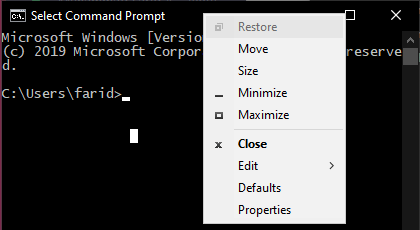 Doing the same thing on Command Prompt shows the menu in English, which is the correct behavior.