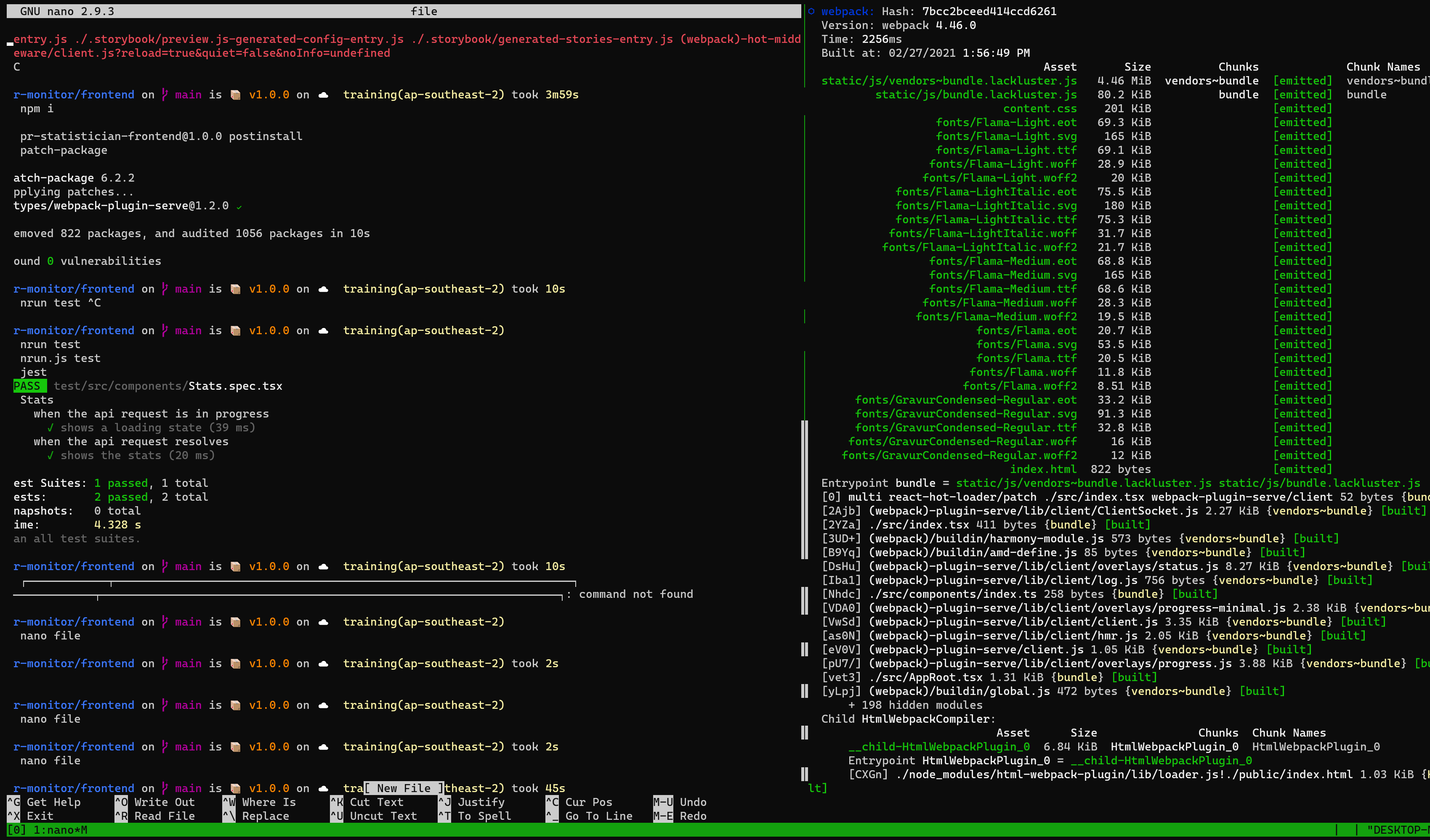 The issue seems to be caused by the webpack build output when its being displayed in a side-by-side panel in tmux, and I've got no idea what to look into to investigate further 😅