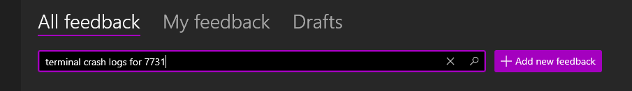 Are you still waiting for me to use the feedback hub? What "category"? I can't make WT crash at will so I have no repro scenario. The best I can do there in post/attach the event log dump as I have done here.