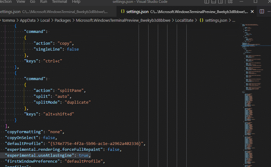 experimental.useAtlasEnginesetting actually goes in yourprofilesettings, rather than the globals (like the other rendering settings). Can you try there instead? (also, that setting doesn't hot-reload, so you'll need to reboot the terminal).Thanks for bearing with me!