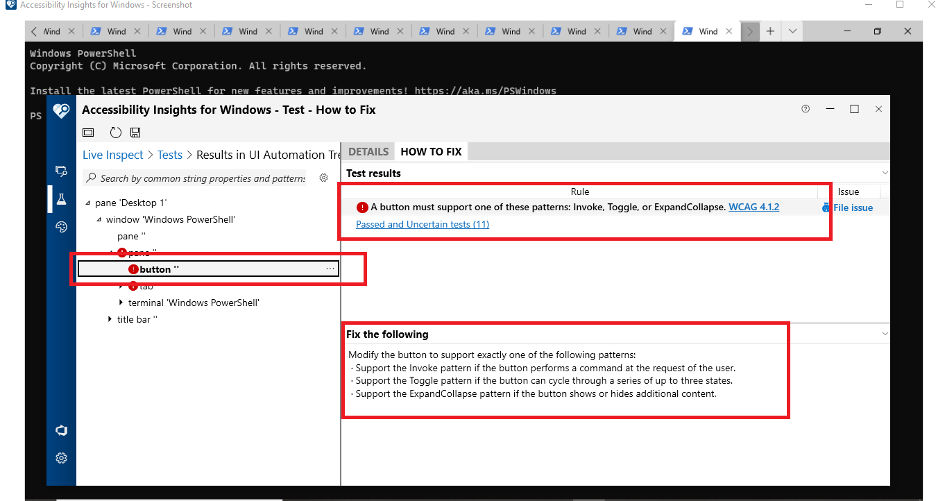 [Screen Reader - Windows Powershell]: A button must support one of these patterns: Invoke, Toggle or ExpandCollapse. #11685