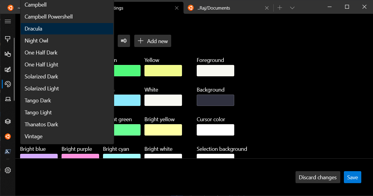 Open the list of colour schemes in the Settings UI and click anywhere on empty space