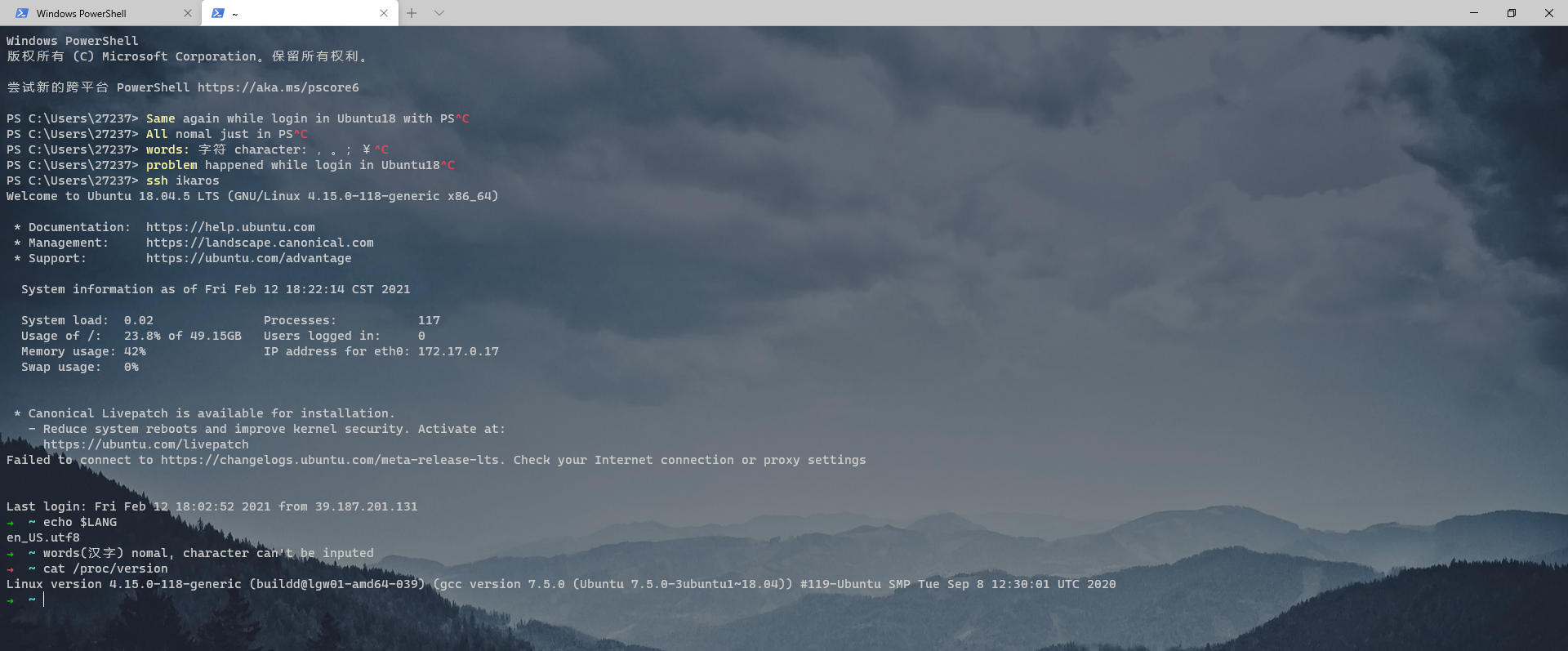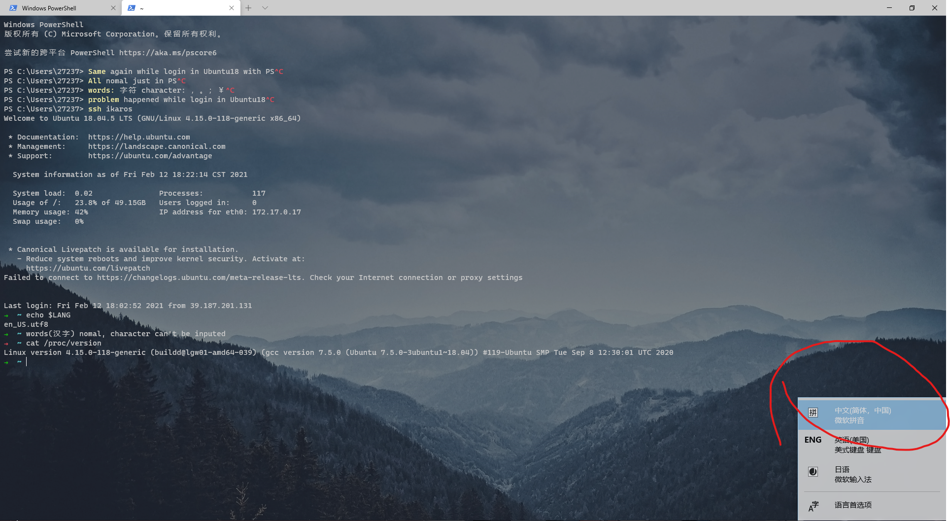 The terminal can input Chinese words, but can't input full width Chinese characters while using powershell.exe or command prompt.exe