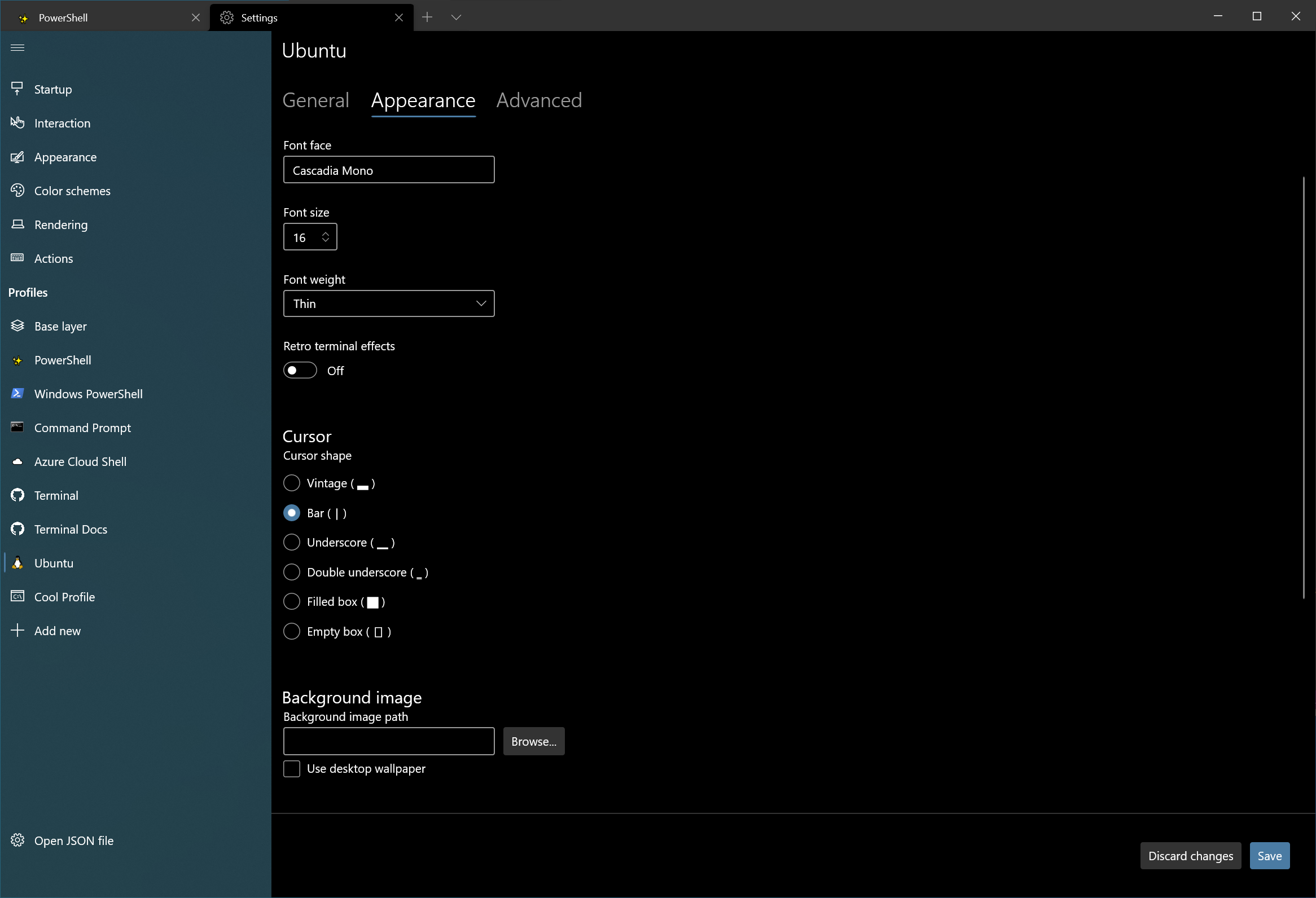 "updates"that profile, the setting is instantly deleted.Proto-extensions generate a new profile in settings.json using the same GUID, thus overriding all customizations to the original profile.
