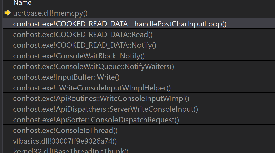 conhost.exe heap corruption in COOKED_READ_DATA::_handlePostCharInputLoop #13284