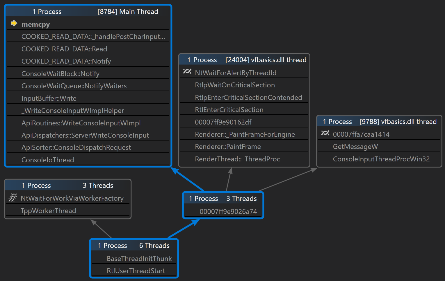 InputBuffer::WritecallsWakeUpReadersWaitingForData(which then callsConsoleWaitQueue::NotifyWaiters)InputBuffer::WaitQueuecontains 1ConsoleWaitBlockitem.This wait block has