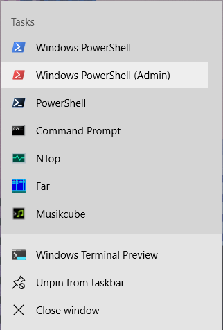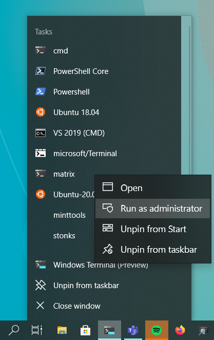 Very often one needs an elevated terminal instance. I recently (relearned) about CTRL+SHIFT for launching items from the taskbar or the start menu, which is awesome, but not very discoverable.