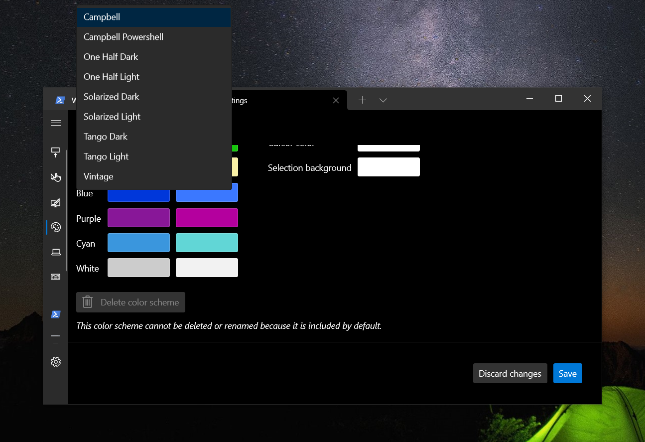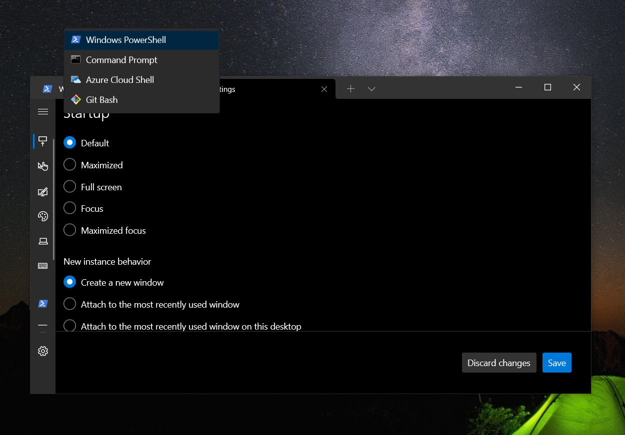 When the section is scrolled the dropdown list is visible outside the "Windows Terminal" window