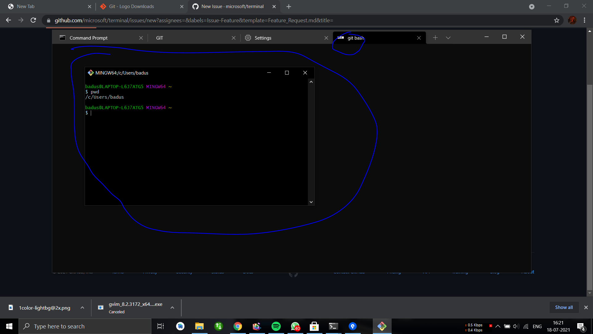 so what am proposing that in current version only git cmd is working properly and i would like to better working of seamless look of git bash