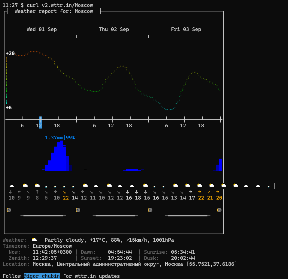 while it's showing meteo map using inline images generated by v3.wttr.in if terminal supports inline images (e.g. in uxterm, mlterm, kitty, wezterm, aminal, yaft, iterm2, mintty etc.)