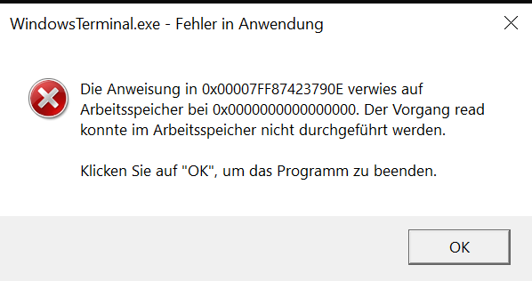 WindowsTerminal.exe - Error in Application