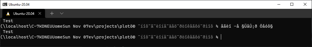 ¯íîô¯ã¯èïíå¯äåä¯ðòïêåãôó¯ðìïô ¾. There's no error, nothing. The terminal is reloaded, but the characters are still weird.After pressing Enter: