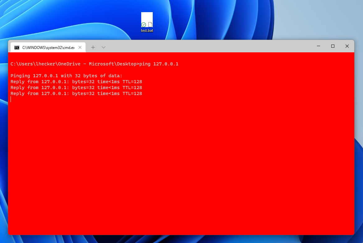 ping 127.0.0.1. Double click and see it executes in WT.On the other hand, if I manually create a new WT tab with the "Command Prompt" profile (Ctrl+Shift+2), I do see the red background. Something seems to be wrong with the default terminal feature.