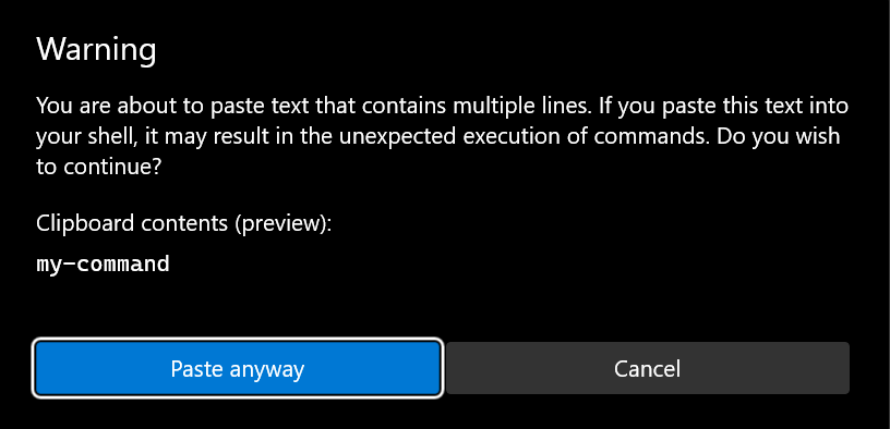 When pasting something that includes multiple lines I get this useful screen: