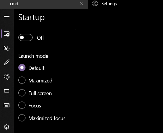 First off, getting you out of here. Press Ctrl+Shift+P to open the Command Palette, use that to open the Settings, and switch launch mode to anything other than "focus"
