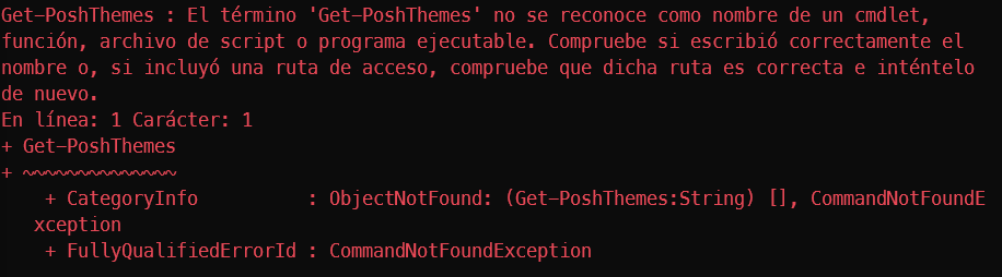 "Get-PoshThemes: The term 'Get-PoshThemes' is not recognized as a cmdlet name,