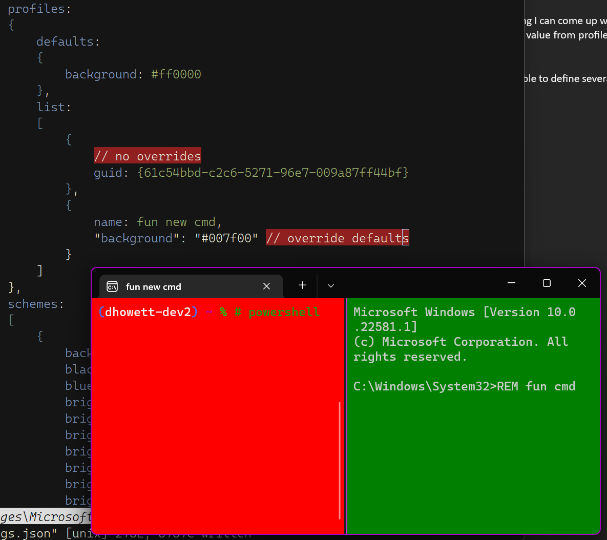 profiles.defaultsshould override ones from dynamic profiles (e.g. WSL distros) and fragments (like, customizations that Canonical does to their WSL distro), but not ones from the rest of your settings file (the rest of the profiles inprofiles.list)@DHowett commented on GitHub (Apr 6, 2022):
