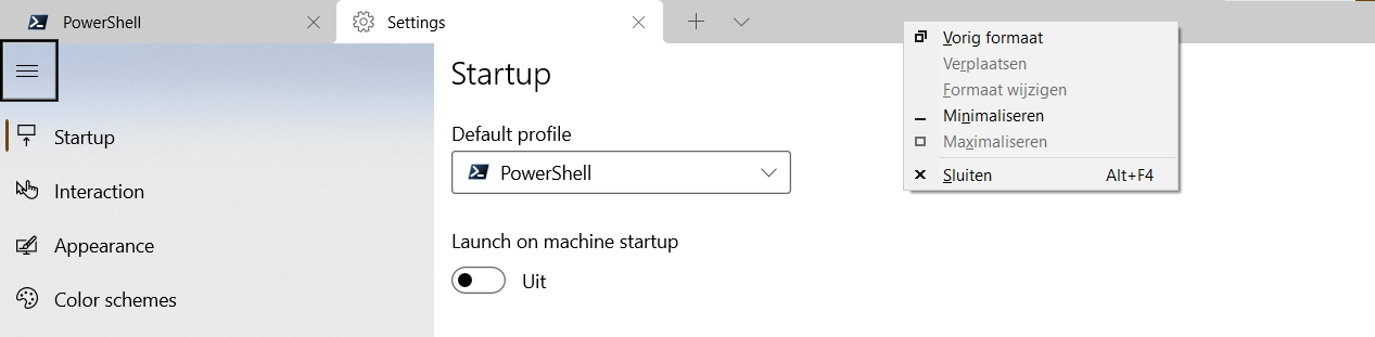 I've now got 1.12.10732.0 but I see no Settings in the menu:
