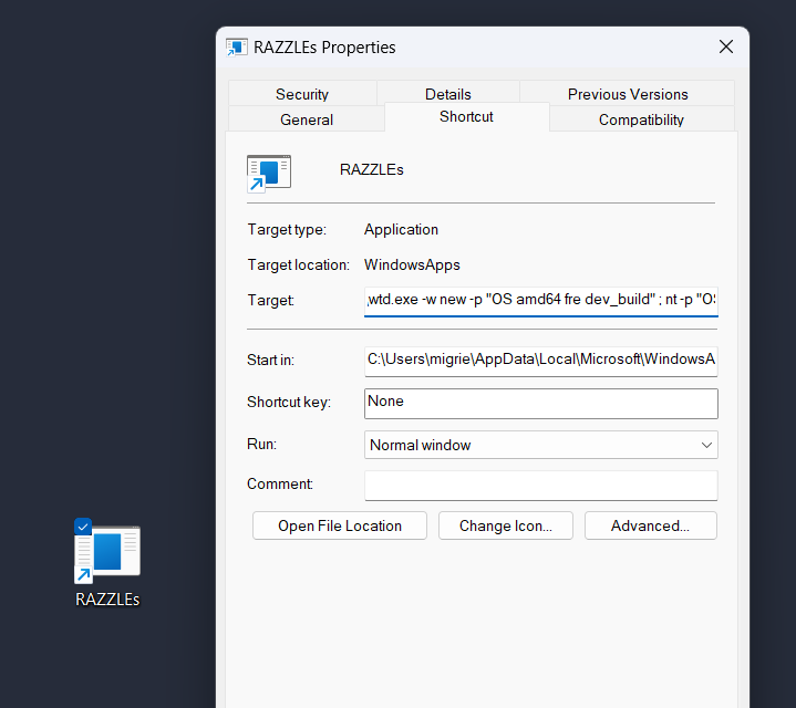 I used to be able to make shortcuts to open wt.