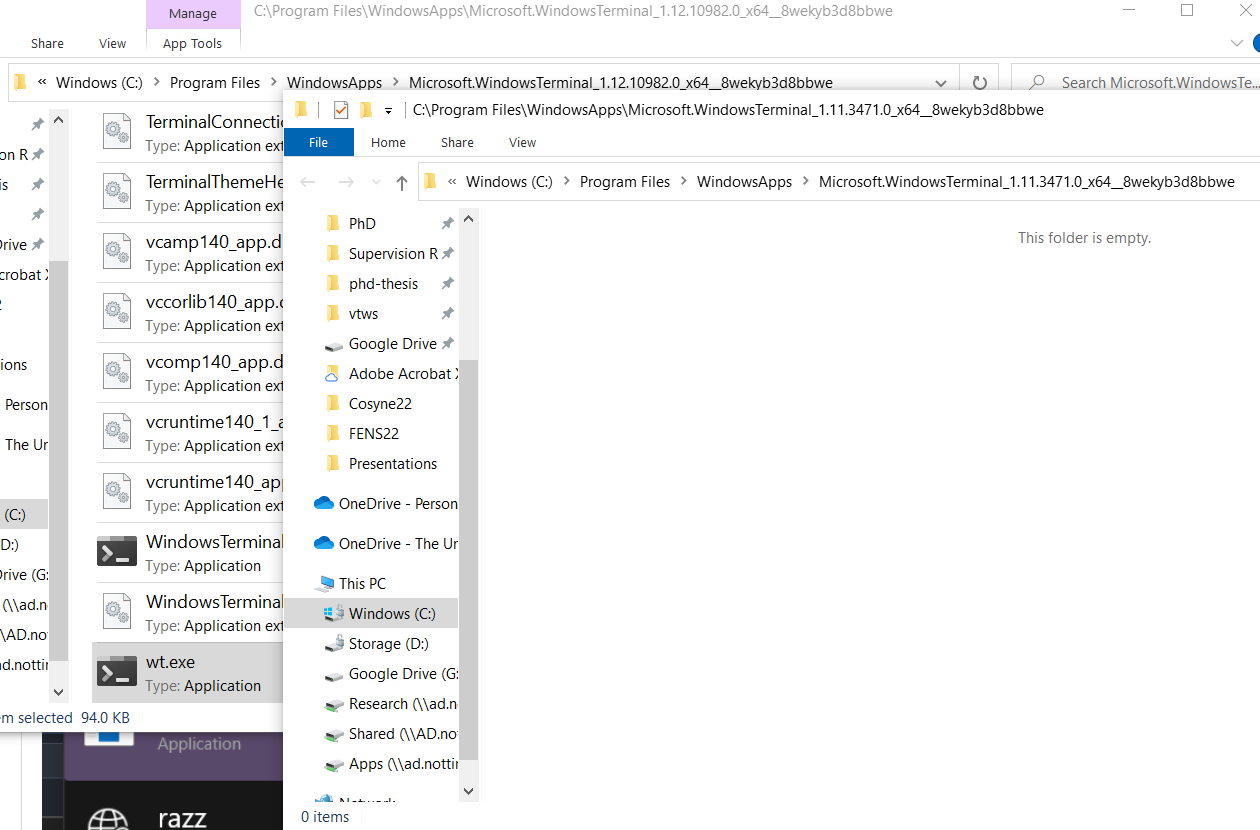 wt.exe)...but interestingly, just clicking that entry in PT Run does open the correct/newest version (1.12).
