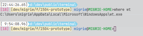 whereshould search the path to see where the exe is on the current path. If nothing shows up, thenwtisn't on the path anywhere.@JoeABCDEF commented on GitHub (Jul 22, 2022):