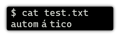 echo "6175746f6d61cc817469636f0a" | xxd -r -p - >test.txtcat test.txtExpected Behavior