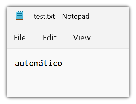 The spanish word "automático" should be displayed inside Windows Terminal without any additional extra spacing between each letter, just like Windows Notepad displays the same file, which is correct:
