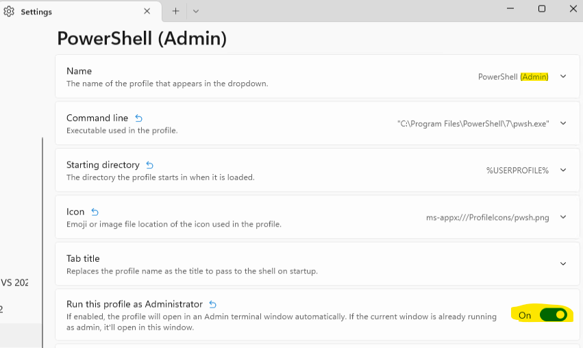 Background: I had originally installed the preview version because non-preview originally lacked the run as admin setting for the profiles.