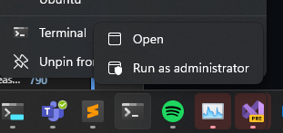 On a separate machine as [non-admin user] it looks like you cannot UAC launch a Windows Terminal instance for [admin user] unless you have previously signed in under that [admin user] account and let Windows build a full desktop profile. It throws a warning that Terminal isn't installed for the [admin user]. It's not likely under normal working conditions that we'd fully sign in as a local admin user in our environment on every machine prior to trying to elevate Windows Terminal though; we usually only ever elevate to [admin user] under normal user accounts. Not sure if you can reproduce this or if that is a concern. Again, just some additional data points if it helps!