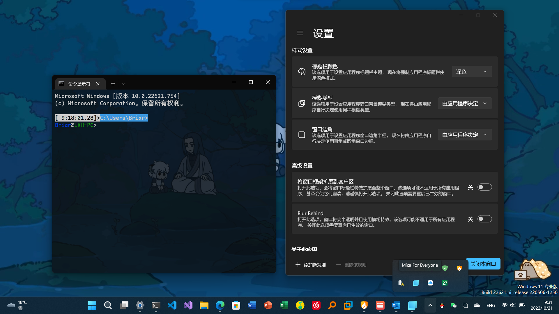 But when I set the Backdrop Type of Mica For Everyone to "Mica", the black block appears.