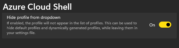 The Hide Profile dropdown works, but the deleteing Command Prompt, Windows PowerShell or Cloud Shell and Pressing Save causes the application to crash.