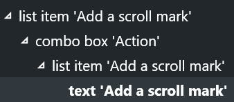 As the user changes the selected list item, "Add a scroll mark" is correctly replaced, but "Action" remains the same. As of now, this is by design, because the user is setting the action, so this seems to make sense.