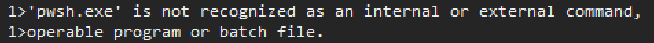 Neither Core nor Windows installed: Build failed, both commands fail because pwsh.exe and powershell.exe are both not recognized. But, it is easier to decipher for newer users because there is an explicit error saying "powershell.exe" is not recognized, so at worst, someone might download Windows PowerShell, which would lead to one of the above cases on rebuild.