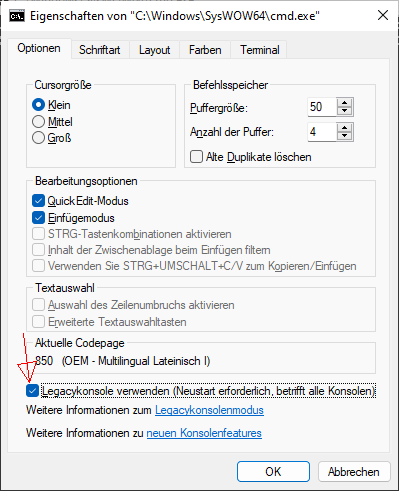Ah, I was meaning to ask anyways and I'm genuinely curious: What's your reason to use the old legacy console? Does the modern conhost have some defect due to which it can't be used with ntvdmx64?
