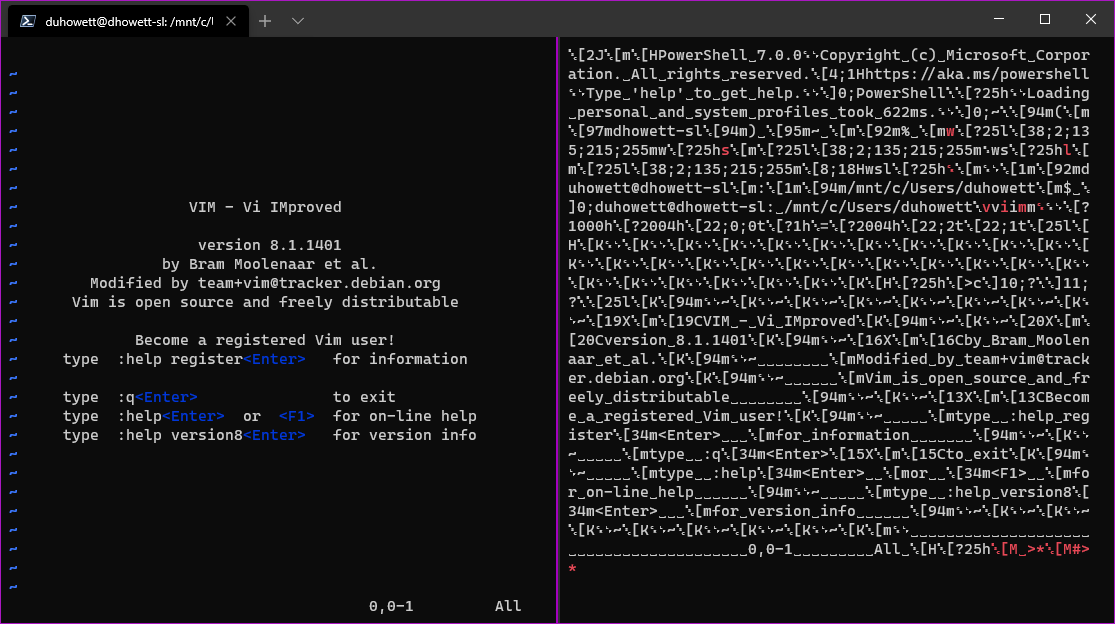 That debugging feature takes the form of a split pane that shows the raw VT sequences being written to and received from the connection.