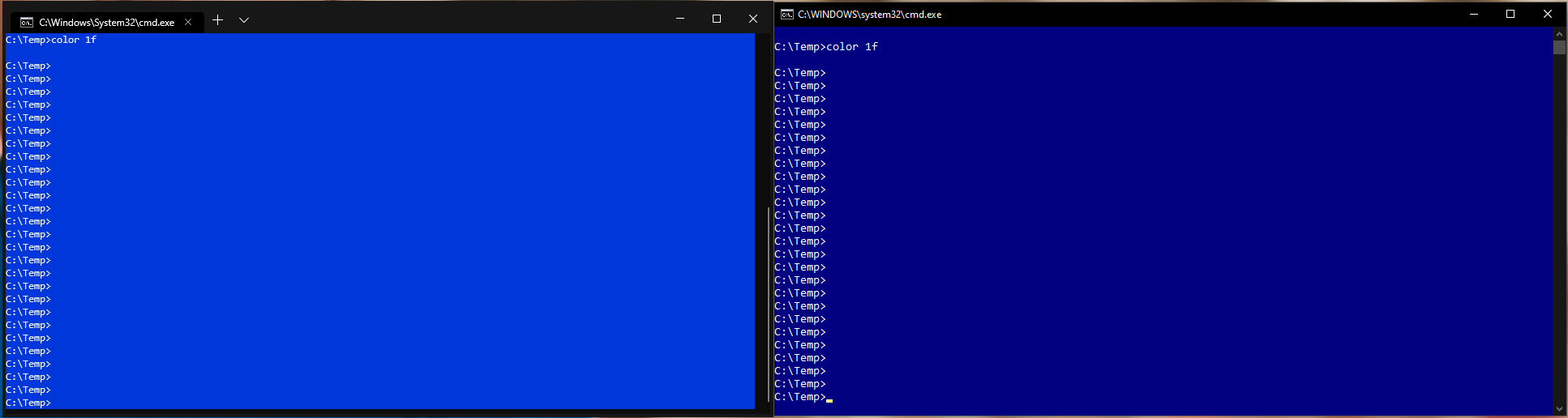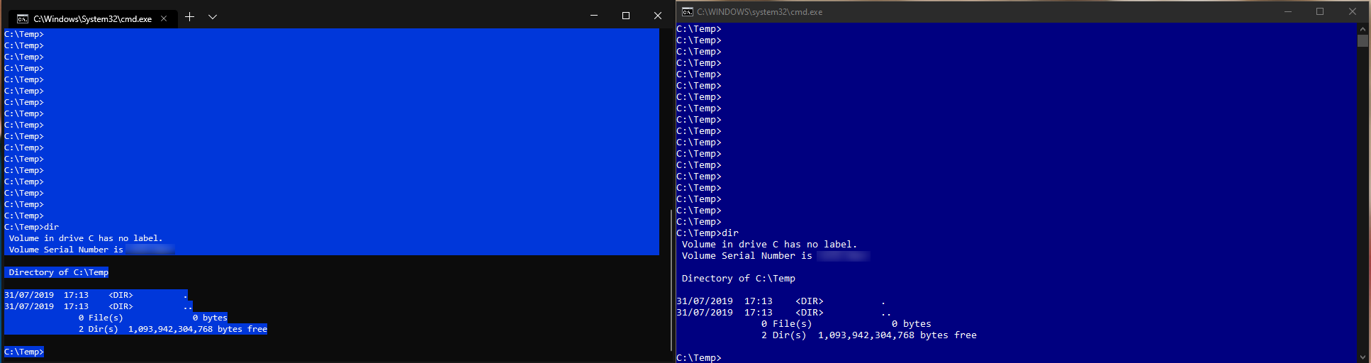 These images show side by side comparisons between Windows Terminal and the classic console