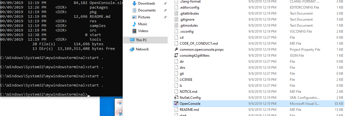 at the end, when I do > start . and then select the file from the explore window, OpenConsole.sln, the visual studio 2019 opens but, gives me error, saying