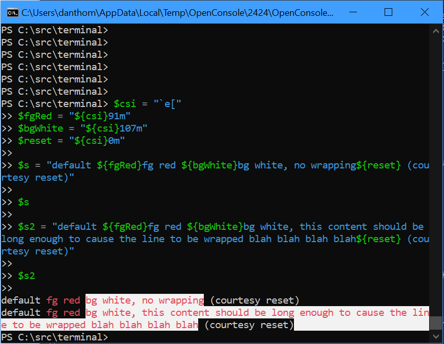 And actually, it gets weirder: if I tweak the string's length such that the wrap occurs in the middle of the "courtesy reset" portion of the content... the bug does not repro.