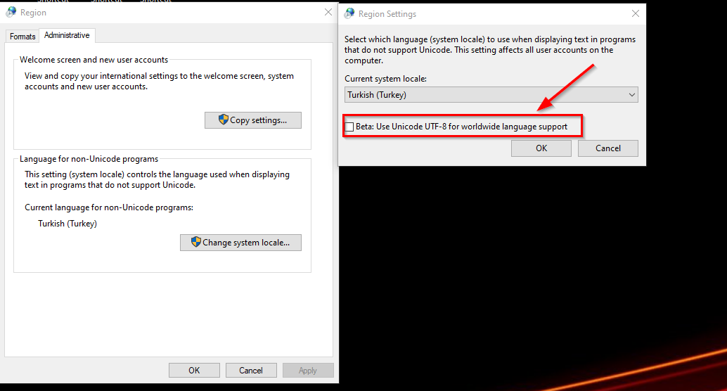 The interesting thing is, the problem still exists even if I turn off the "Use Unicode UTF-8 for worldwide lanugage support" feature.