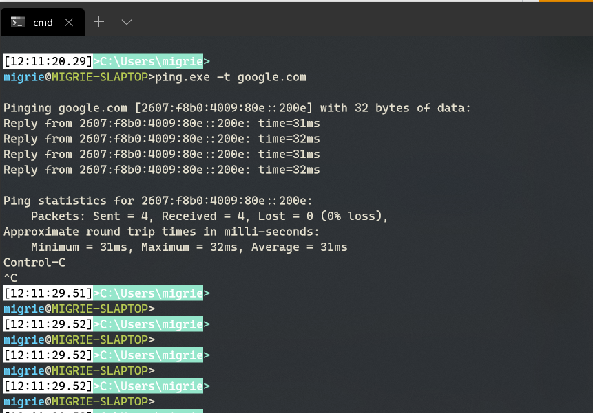 ping.exeall at the end@DHowett-MSFT commented on GitHub (Nov 25, 2019):