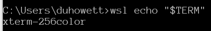 bashis eclipsing the WSL one, or you're cygwin'ssshinstead of the one that ships with Windows, I don't think there's a way to get it to report a differentTERMby default.Incidentally, Cygwin's terminal support is lagging behind even Windows 10's inbox console host, and it may produce unusual or unfortunate results when you use more complicated VT sequences.