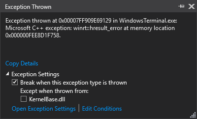 Debug\WindowsTerminal.exeI get this error:The app should start unless I need to be on a newer version of Windows?